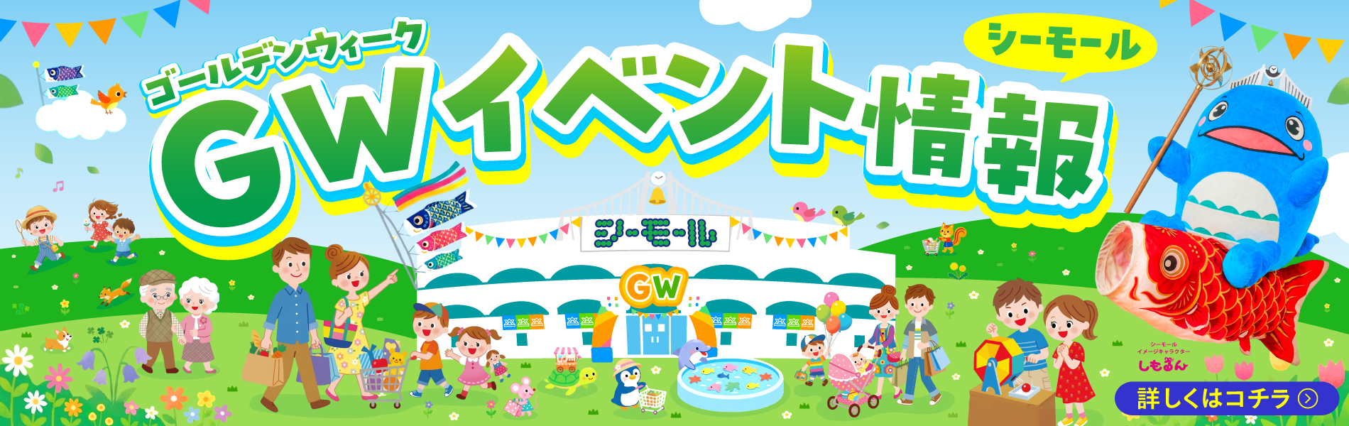 ALL EVENT SHOPNEWS INFO コムサイズム 新商品とキャンペーンのお知らせ★ おすすめ商品のご紹介です。 【レディース】 ほどよいリラックス感のあるダブルテーラードジャケ[…] SHOPNEWS それいけ!アンパンマン ショー それいけ!アンパンマン ショー 詳細は下記画像をご確認お願いいたします。 EVENT 中央コンタクト♡お友だち紹介キャンペーン♡ こんにちは!3階CHUO CONTACTです。 会員さまが当社をはじめて利用するご家族さま、ご友人さまをご紹介していただ[…] SHOPNEWS 中央コンタクト 学生の方応援キャンペーン、ずっと学割30%🏫 3階のCHUO CONTACTより学割のご案内★ 中学・高校・大学・大学院・専門学校に在学中の学生さんは、 対象のコンタ[…] SHOPNEWS 中央コンタクト 人気カラコン『フルーリー』×『カラーズ』まとめ買いキャンペーン 3階 CHUO CONTACTよりカラコンセールのご案内です🌸 4月6日(月)~5月10日(日)の期間中[…] SHOPNEWS 毎回大好評!!「人間クレーンゲーム」 500円で最低でも500円の商品券がアタル!! お子さんがクレーンになって好きなカプセルをゴールに運ぶと中に書いてある賞[…] EVENT コムサイズム ダブルブレストジャケット★ おすすめ商品のご紹介です。 ほどよいリラックス感のあるダブルテーラードジャケッ[…] SHOPNEWS 夢限大みゅーたいぷ 4th Single「超惑星Xへの旅」リリース記念 47都道府県制覇の旅「スーパーポジション 〜夢限大編〜」開催決定! 夢限大みゅーたいぷ 4th Single「超惑星Xへの旅」リリース記念 47都道府県制覇の旅「スーパーポジション 〜夢限[…] EVENT 全ての新着情報をもっと見る それいけ!アンパンマン ショー それいけ!アンパンマン ショー 詳細は下記画像をご確認お願いいたします。 EVENT 毎回大好評!!「人間クレーンゲーム」 500円で最低でも500円の商品券がアタル!! お子さんがクレーンになって好きなカプセルをゴールに運ぶと中に書いてある賞[…] EVENT 夢限大みゅーたいぷ 4th Single「超惑星Xへの旅」リリース記念 47都道府県制覇の旅「スーパーポジション 〜夢限大編〜」開催決定! 夢限大みゅーたいぷ 4th Single「超惑星Xへの旅」リリース記念 47都道府県制覇の旅「スーパーポジション 〜夢限[…] EVENT 前回大好評につき第2回!!「巨大跳び箱チャレンジ」出場者募集中!! ※詳細画像参照下さい EVENT 山口県に大衆演劇場復活!!「下関ぶらり劇場」絶好調公演中!! ぜひお気軽に一度ご鑑賞下さい♪ EVENT 脳トレピアノ 随時募集中 EVENT フードバンクポスト シーモールではフードバンクポストを設置致しております。 設置場所はシーモール地下にございます。 ご家庭や事業所等から出る[…] EVENT 感染症対策へのご理解・ご協力をお願い致します。 EVENT EVENTをもっと見る コムサイズム 新商品とキャンペーンのお知らせ★ おすすめ商品のご紹介です。 【レディース】 ほどよいリラックス感のあるダブルテーラードジャケ[…] SHOPNEWS 中央コンタクト♡お友だち紹介キャンペーン♡ こんにちは!3階CHUO CONTACTです。 会員さまが当社をはじめて利用するご家族さま、ご友人さまをご紹介していただ[…] SHOPNEWS 中央コンタクト 学生の方応援キャンペーン、ずっと学割30%🏫 3階のCHUO CONTACTより学割のご案内★ 中学・高校・大学・大学院・専門学校に在学中の学生さんは、 対象のコンタ[…] SHOPNEWS 中央コンタクト 人気カラコン『フルーリー』×『カラーズ』まとめ買いキャンペーン 3階 CHUO CONTACTよりカラコンセールのご案内です🌸 4月6日(月)~5月10日(日)の期間中[…] SHOPNEWS コムサイズム ダブルブレストジャケット★ おすすめ商品のご紹介です。 ほどよいリラックス感のあるダブルテーラードジャケッ[…] SHOPNEWS メンズクリア 【4月の新習慣】「なんとなく」のヒゲ剃りはもう卒業。賢い男性の「時短×清潔感」戦略 新年度がスタートする4月。環境が変わったり、後輩ができたりと、自分の「見られ方」を意識する機会が増えていませんか? 忙し[…] SHOPNEWS EDION ザ・バーゲン開催中 ~12,000点徹底値下げ~ SHOPNEWS 中央コンタクトOPEN!(3階) 3月27日にシーモール3階に、コンタクトレンズ専門店 中央コンタクト シーモール下関店がOPENしました! OPEN記念[…] SHOPNEWS SHOPNEWSをもっと見る 新店情報(3.16更新) 2026年4月3日オープン 店名 保険見直し本舗 場所 1階 新規、見直し、アフターフォローまで各種サービ[…] INFO シーモール 出店者募集 シーモールで出店をしてみませんか 出店や短期間のポップアップ出店等大募集しております! 出店区画:1Fフードコート(23[…] INFO 現状の営業時間のお知らせ 現状営業時間/10:00~19:30 4Fレストラン街/11:00~19:30オーダーストップ ※サイゼリヤを除く B[…] INFO 縁結び大学にインタビュー取材されました 縁結び大学のインタビュー内容へ INFO 2022年4月1日より駐車場サービスが一部変更となります 2022年4月1日より駐車場サービスが一部変更! 詳細は画像をご参照ください。 INFO シーモール駐車場定期券のご案内 下関駅周辺で駐車場をお探しの方必見! シーモール駐車場定期券のご案内 ※詳細は画像をご覧ください INFO 社会・環