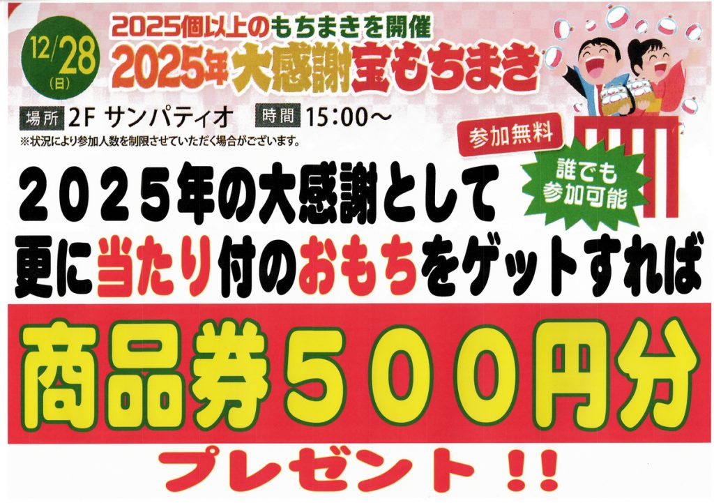 ひろったお餅にアタリがついてたら「商品券500円」プレゼント!!