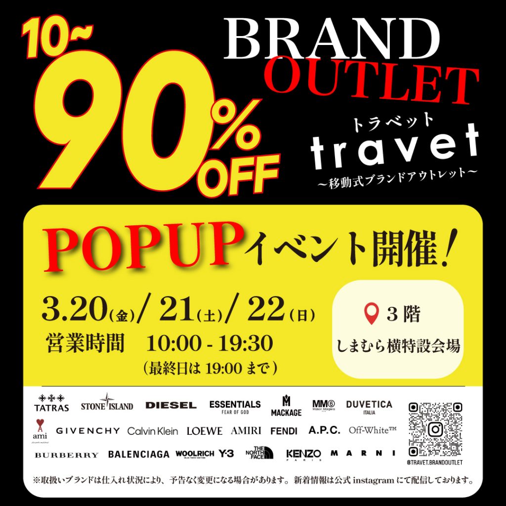 アパレルオフプライスPOP UPイベント【travet】開催!