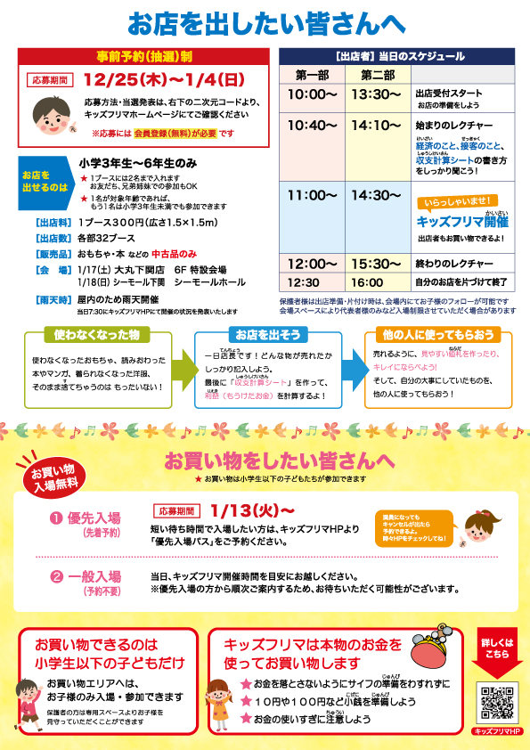 キッズフリマは、売るのも買うのも子どもだけで行うフリーマーケット。