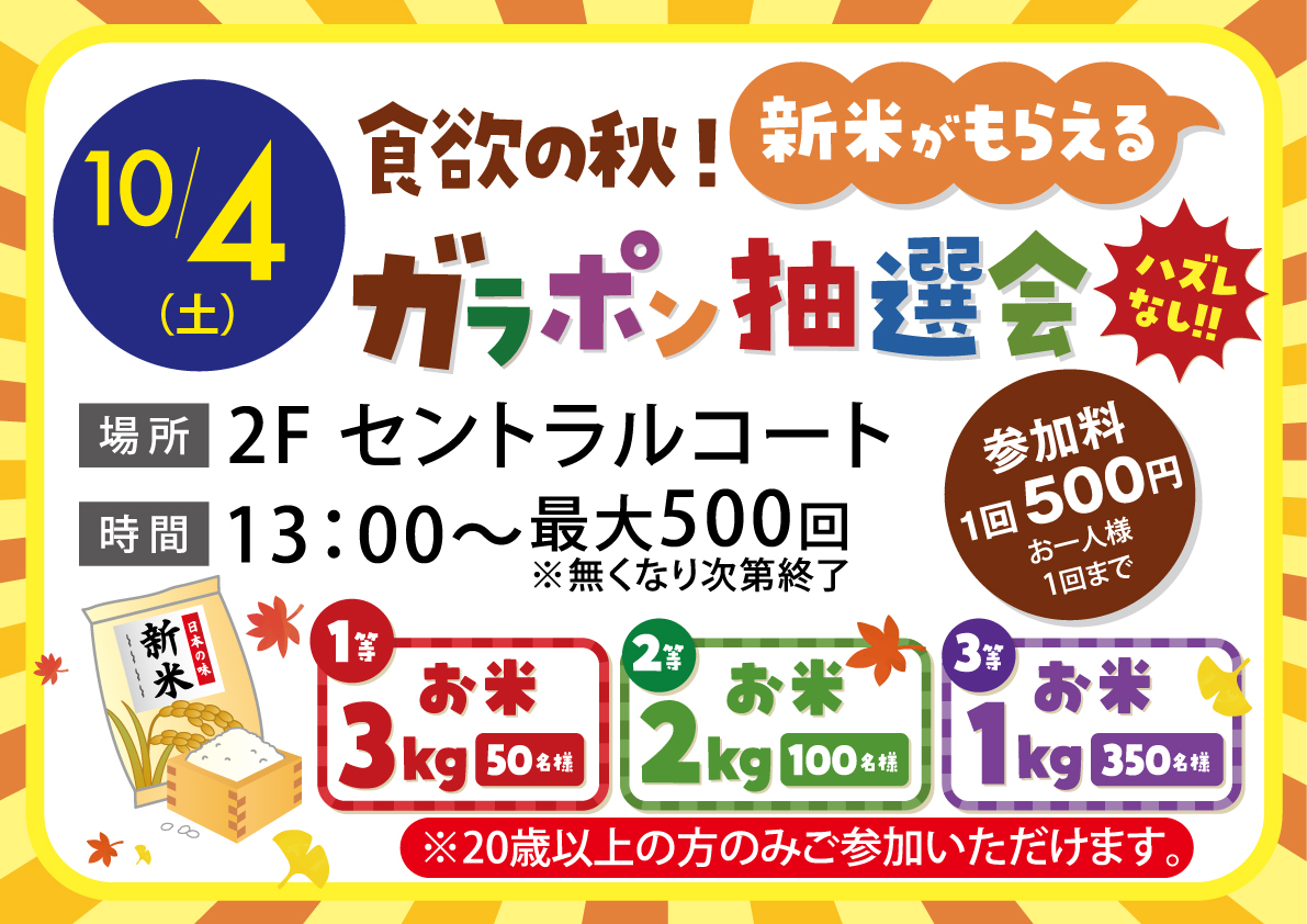 ハズレなしの新米がもらえるガラポン抽選会を開催!