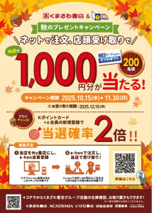【くまざわ書店】くまざわ書店&e-hon 秋のプレゼントキャンペーン開催!!