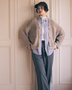 毛足が長いカーディガンも重たく見えません。