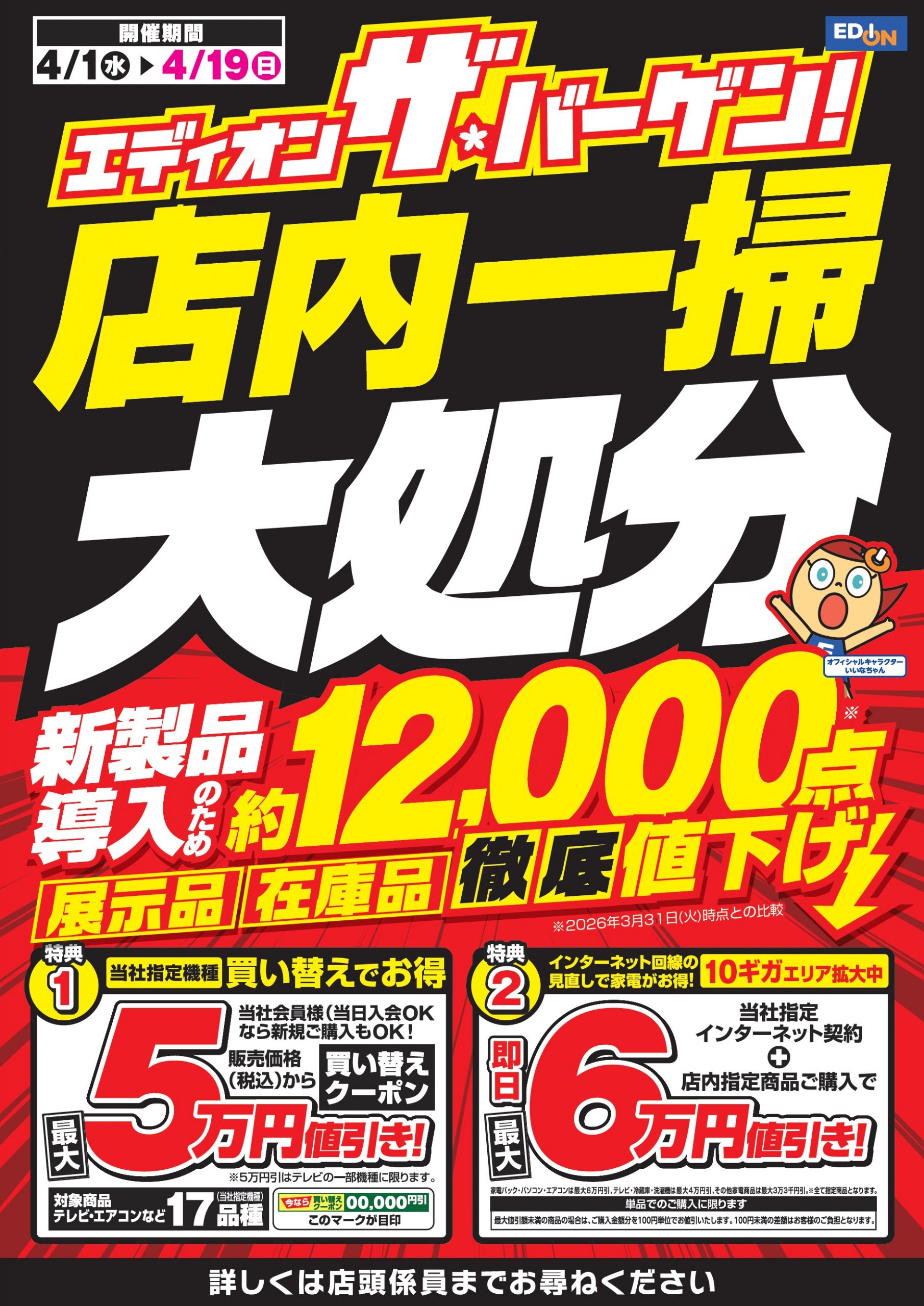 EDION ザ・バーゲン開催中 ~12,000点徹底値下げ~